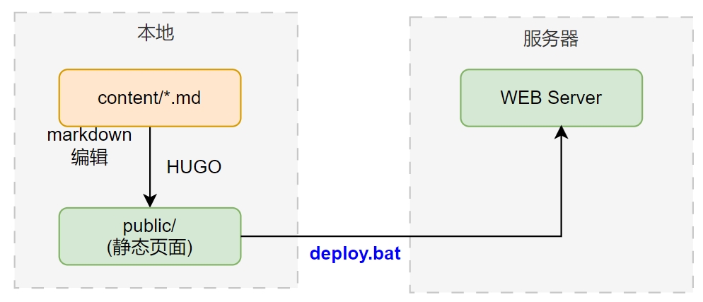 本文重点介绍一下,编辑完成markdown文件以后,如何一条命令发布到服务器,使用的 windows 批处理命令如下: