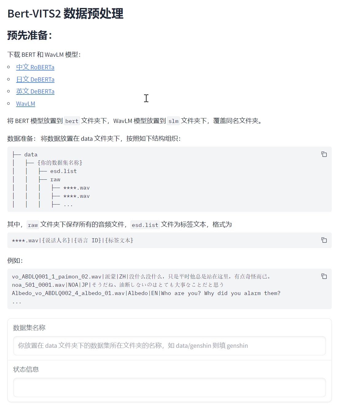 按照WebUI上的指南,要能够开始训练数据,还需要先从huggingface上下载依赖的几个模型文件。